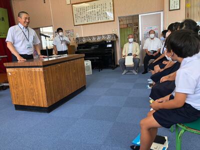7月8日(火)本校ホールにて、御所浦小学校少年消防クラブの入部式が行われました。天草広域連合御所浦分署から署員3名にご来校いただきました。入部式では、規律訓練や講習も実施され、早速気合いが入った子どもたちです。小さな防災リーダーとして、御所浦の安全を守ってくれることでしょう!