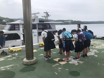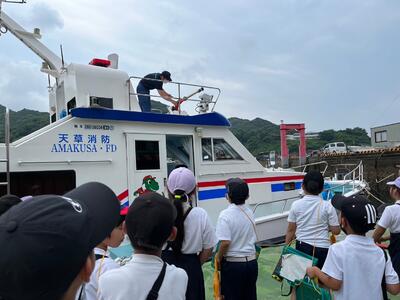 本日、五和町二江にて、「イルカとの共生事業」という天草市の事業が行われました。これは本年度より、4年生を対象に開始された取り組みです。 初めて野生のイルカを目にした子どもたちは、「わあー!」「おったー!」と感動の声をあげていました。 ふるさと天草の素晴らしさを、きっと実感できたことでしょう。