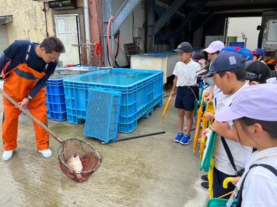 朝から子どもたちに囲まれる「ごしょっこ水族館」。今日も「わあ、きれいになってる!」と声をあげながら、1・2年生の子どもたちが水槽をのぞき込んでいました。昨日の放課後、保護者の方が掃除と海水の入れ替えをしてくださったおかげです。水槽の中では、鯛の稚魚がすくすくと成長しています。