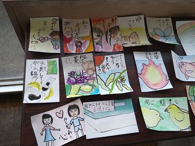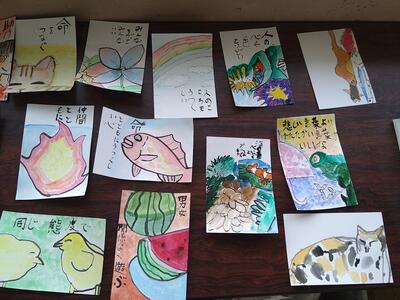 それぞれの個性が出ますね。何人か出来上がった作品を紹介してくれました。家族に関わること、趣味に関わること、どれもいい作品になりそうでした。