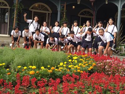 「わたしは縦割り班花うえコンテストで水やりや草引きなど協力してきれいな花をさかせたいです」