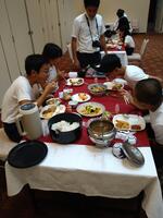 4月19日(土)に植えた餅米を使い、もちつきを行いました。お世話になった山崎様に見守られながら、5年生は感謝の気持ちを込めて楽しくもちつきを体験しました。つきたてのお餅に砂糖醤油をつけて、子どもたちはおいしそうに頬張っていました。こうした貴重な体験ができることは、子どもたちにとって大きな幸せです。