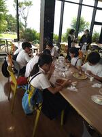 4年生は、勇志国際高校近くの入り江で伝馬船の体験を行いました。地域の方々のご協力をいただきながら、全員が艪をこいで舟を進める貴重な経験をしました。風が吹く中での操縦は容易ではなく、悪戦苦闘しながらも和船ならではの操船を体感することができました。 ※伝馬船(てんません)とは、日本で使われた木造の小型和船で、本船と岸の間で荷物や人を運ぶために用いられた船です。