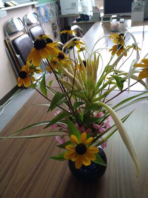 廊下に並んだ七夕飾り。思い思いの願いが綴られた短冊に目を通すと、心が温かくなります。「てっぽうのおもちゃをかってもらえますように」「つりとはぜとりがじょうずになりますように」「おけしょうがじょうずになりますように」「成人したら先生とお酒がのめますように」・・・職員も児童も、それぞれの願いが叶うといいですね。