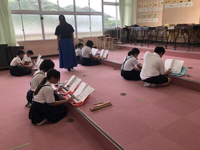 校長室で仕事をしていると、体育館の方から「鉄腕アトムのテーマ曲」が軽快に流れてきました。音楽に惹かれて体育館へ向かうと、11月の天草郡市音楽会に向けて、本校の3・4年生が一生懸命練習している姿がありました。演奏は以前よりも力強くなり、音のまとまりや集団としての一体感も感じられるようになってきました。すばらしい!