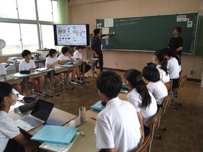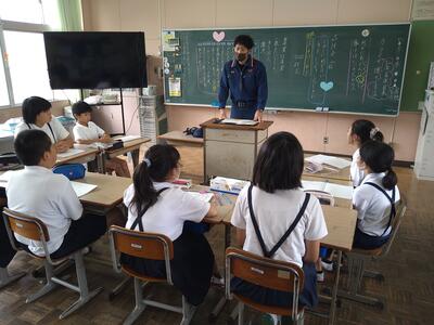 授業終末の10分に私(教頭)からの話をしました。小学校の野球部所属時代、上達せずに諦めかけたこと、努力を続け、結果が出だすと嬉しくなり、さらにがんばり自信を持ったこと。その時の友達とのかかわりなどなど・・・。2年生の子供たちは、目を輝かせて真剣に聞き入ってくれました。その後、夏休みがんばることを書いていた子供たちでした。