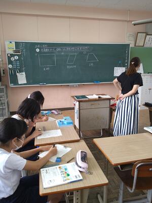 5年生は算数の学習。対角線から図形の特徴を考えていきます。