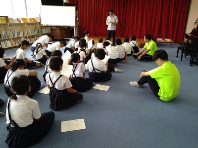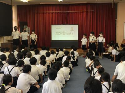 下は、児童への説明会です。この活動の意義や留意点を担当がわかりやすく説明します。