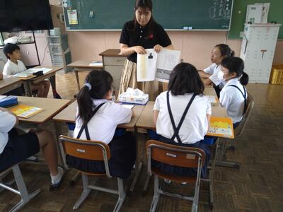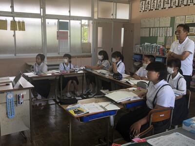 5年生は「カライモ博士」という道徳の題材。「熊本の心」に掲載されている有明町出身の今福民三さんの