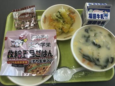 災害時などのために学校給食用非常食として準備されているものです。災害は、いつ何時起きるか分かりません。日頃からの備え(備蓄)は大切ですね。