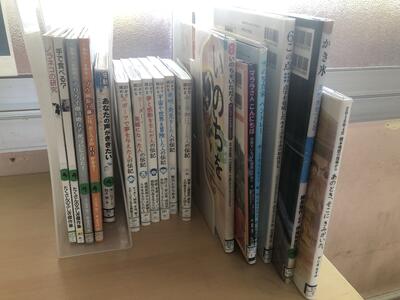 5年生教室には、教科や総合の時間に活用する福祉や環境に関する本が並べてあります。