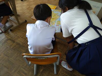 4年生は社会の学習。導入の地名探し「九州地方」です。「霧島神宮」をみんなで探しています。