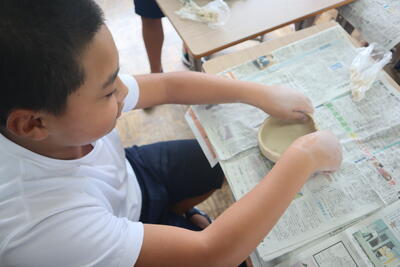 昨日、天草市が主催していただいている「子ども作陶体験」を天草市の窯元の方を講師にお招きし、6年生が行いました。天草市には、全国で有名な「天草陶石」があり、伝統的な窯元も多数あります。そこで、天草の子供たちに地域伝統工芸として天草陶磁器について学び、触れる機会が提供されています。