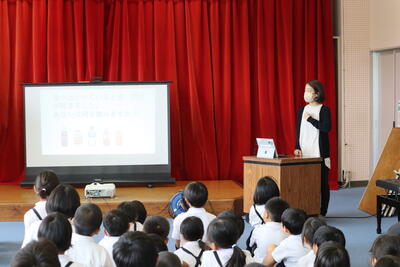 4年生が社会科の学習の一環として、御所浦クリーンセンターを見学しました。所員の方々には、ゴミ処理の仕組みについて丁寧に説明していただき、子どもたちは一生懸命にメモを取っていました。見学の中では、御所浦仕様のゴミ収集車に実際にゴミ袋を投入する体験もさせていただきました。毎年ご協力いただいているおかげで、子どもたちの学びがより深まっています。