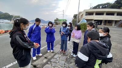 各地区に分かれ、夏休みと冬休みに小学生・中学生が道路や港のゴミを拾ったり、地域の皆さんがよく使う場所を清掃したりします。自分たちで考え、自分たちで伝え合って、進めていきます。もちろんそれぞれの地区の担当の教職員が付き添いますが、基本は小中学生が自分たちで進めていきます。いつも中学生の皆さんが小学生をうまくリードしてくれています。今回も、いつもお世話になっている地域の皆さんのために、帰省する皆さんのために、大好きな御所浦のためにという思いを込めてのボランティアです。