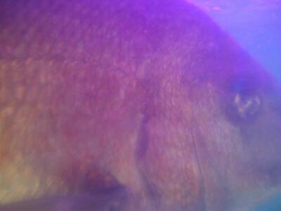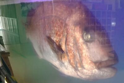 いよいよ3学期。ごしょっこ水族館の大鯛「仮名:武蔵坊」も元気に朝の食事をしていました。