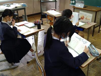 4年生は、詩集をつくる学習です。「月」「正月」など自分で決めたテーマの詩を集めます。