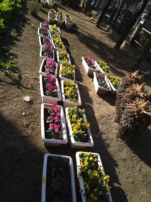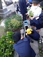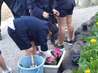 職員玄関側には5年生が育ててくれているプランターの花がきれいに花を咲かせています。