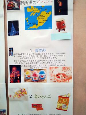 その5年生の総合的な学習の時間のまとめが掲示してあります。「御所浦のいいところ」がテーマです。