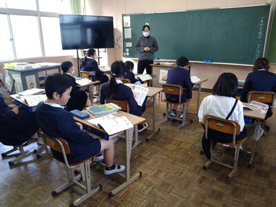 4年生は、社会科の地域学習。ちょうど授業が始まったばかりで、通潤橋、干拓などのこれまでの学習を振り合えっていました。