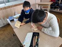 Iタブレットを使うことが多い今の学習形態ですが、このように実際に物を使っていろいろ考える活動も大切にしています。