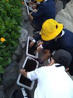 これまでヒラメや車エビの稚魚放流を経験させていただきましたが、今日はマダイの放流を体験しました。稚魚のつかみ方にも慣れてきたのか、これまで以上にスムーズに放流できていたと思います。