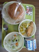 さあ、今日の給食は「ウズラの卵とジャガイモのケチャップ煮」「リンゴジャム 食パン」「スパゲッティサラダ」でした。美味しく頂きました。みんなにウズラの卵は何個ずつだったのかな?気になってしまいました。
