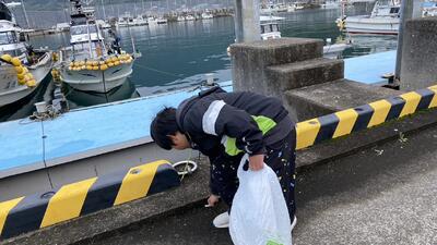 各地区に分かれ、夏休みと冬休みに小学生・中学生が道路や港のゴミを拾ったり、地域の皆さんがよく使う場所を清掃したりします。自分たちで考え、自分たちで伝え合って、進めていきます。もちろんそれぞれの地区の担当の教職員が付き添いますが、基本は小中学生が自分たちで進めていきます。いつも中学生の皆さんが小学生をうまくリードしてくれています。今回も、いつもお世話になっている地域の皆さんのために、帰省する皆さんのために、大好きな御所浦のためにという思いを込めてのボランティアです。