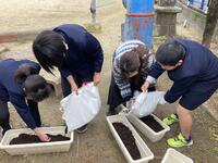 職員玄関側には5年生が育ててくれているプランターの花がきれいに花を咲かせています。