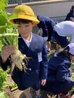 5年生が米作りでお世話になっている山崎様のご厚意により、1年生がみかん狩りを体験させていただきました。収穫したばかりの新鮮なみかんの香りは、子どもたちの心に深く残ったことでしょう。貴重な経験をさせていただき、誠にありがとうございました。