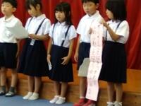 3時間目には、4年生が「天草市子ども民生委員 委嘱状交付式」に参加しました。多くの民生委員の皆様に見守られ、脇島会長から委嘱状を受け取った子どもたちは、民生委員としての活動をスタートさせました。その後、認知症サポーター養成講座を受けた4年生、気持ちが引き締まったことと思います。
