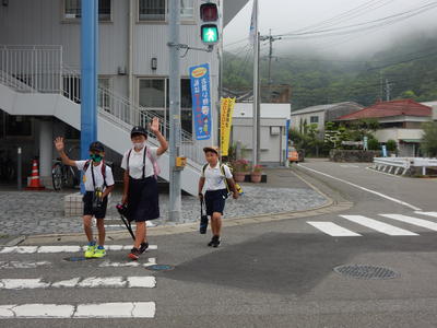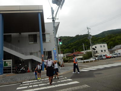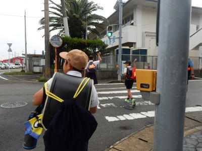 正門横の交差点には地域の方が立っていただき、子どもたちの安全な登校をサポートしてくださっていました。