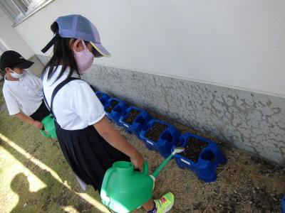 あなたたち去年もでしたよね。一生懸命水かけをして、芽が出たときはめっちゃよろこんでいました!