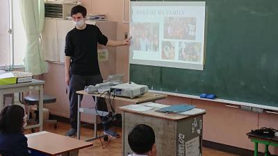 本日、新しいALTのセオドア先生が着任され、歓迎会を実施しました。7月末にアメリカから日本に来られたばかりで、今、日本語の勉強中なのだそうです。しかし、自己紹介では、流暢な日本語でスピーチされました。早速、1時間目から6年生の授業に入っていただきました。出身地やご家族のことについて話され、子どもたちも笑顔で授業を受けていました。
