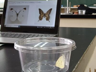3年生・・・。チョウの卵を虫めがねを使ってしっかりと観察中。