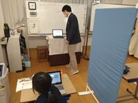 3年生は社会科の学習。昔と今の御所浦の航空写真を見比べて、どんな違いがあるかを考えます。