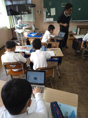 さて、子どもたちは今日も元気です。4年生の授業から紹介します。