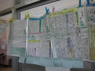 それぞれの担当の先生からダイレクトに子どもたちに発信する御所浦小学校壁新聞「ごしょっこにこにこ元気玉」・・・。