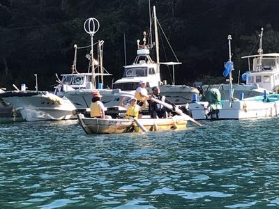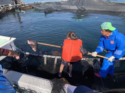 「先日は養殖をしているところを見せていただきありがとうございます。マダイなど、えさを養殖の魚にあげる体験をさせていただきありがとうございました。あと初めて知ったことが、2こあります。1つ目はいけすからマダイをたいかごに入れて、1.5kgにならないマダイはまたいけすにもどすことを初めて知りました。出荷作業などすもとまで運ぶのも知りました。2つ目はいけすの中にマダイが1万びきもいることを初めて知りました。箱に入れる物もたいかごということがわかりました。箱にマダイを入れるときは、重さやサイズを見てたいかごに入れることも知ったし、6ぴきもたいかごに入れることも初めて知りました。赤潮が来たときのたいさくは、えさをあげないことと、いけすを深くすることだとわかりました。マダイをすくったりする体験もやりました。シマアジも初めてえさやりをしました。貴重な体験をさせていただきありがとうございました。めったにできないこともあってすごいと思いました。シマアジももらって本当にありがとうございました。」
