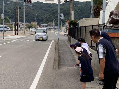 子どもたちにあいさつに合わせて肩の横あたりでかわいらしく手を振るというもの・・・。