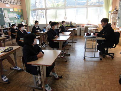 本日、東京都の明星大学の学生さん8名が、本校の教育活動の視察訪問に来校されました。皆さんは、へき地教育について自主的に学習をされている方々で、高い志を持たれています。歓迎会では、はつらつとした学生さんの姿に、子どもたちの目も輝いていました。3日間という短い期間ですが、御所浦小の子どもたちとの交流を満喫してほしいと思います。