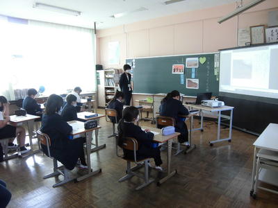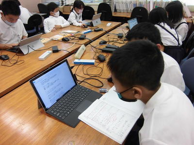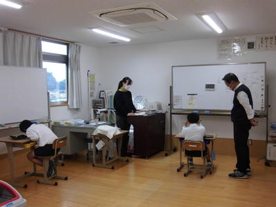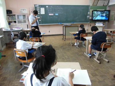 今日は、天草市教育委員会の先生、御所浦中学校の先生、東京からの学生さん(キャラバン隊)が来校されました。2時間目の5年生の国語の授業では、タブレット端末に自分の考えを残しながら、話し合いが行われました。児童は、緊張しながらも話し合いが少しずつ活発になっていく姿が見られました。緊張の中での授業、これも大切な経験です。