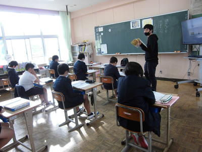 今日は、天草市教育委員会の先生、御所浦中学校の先生、東京からの学生さん(キャラバン隊)が来校されました。2時間目の5年生の国語の授業では、タブレット端末に自分の考えを残しながら、話し合いが行われました。児童は、緊張しながらも話し合いが少しずつ活発になっていく姿が見られました。緊張の中での授業、これも大切な経験です。