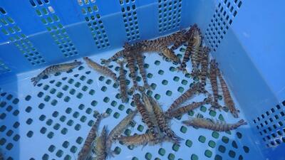 今日は昼休み、クルマエビ&マダイの放流です・・・。
