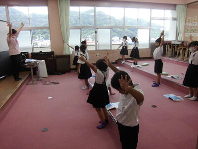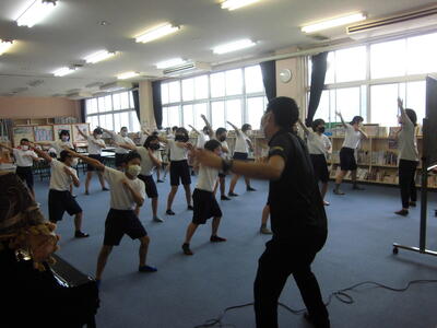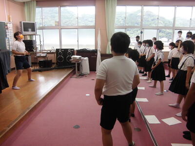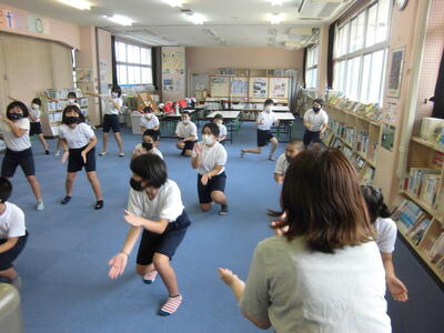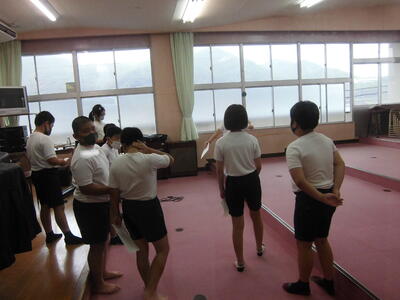 1年生と2年生は、多目的室でダンスの練習・・・。