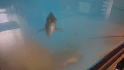 メジナくんの撮影に成功。しかし実はこのメジナくんが一番気になります。主にクルマエビくんにちょっかいを出している・・・。昨夕飲食店経営のMMさんも「メジナはいたずらする」と言われていました。