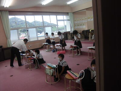 校長室で仕事をしていると、体育館の方から「鉄腕アトムのテーマ曲」が軽快に流れてきました。音楽に惹かれて体育館へ向かうと、11月の天草郡市音楽会に向けて、本校の3・4年生が一生懸命練習している姿がありました。演奏は以前よりも力強くなり、音のまとまりや集団としての一体感も感じられるようになってきました。すばらしい!
