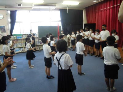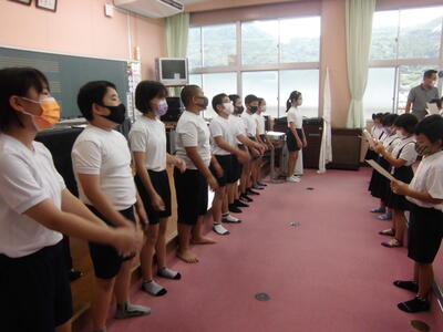 本日、東京都の明星大学の学生さん8名が、本校の教育活動の視察訪問に来校されました。皆さんは、へき地教育について自主的に学習をされている方々で、高い志を持たれています。歓迎会では、はつらつとした学生さんの姿に、子どもたちの目も輝いていました。3日間という短い期間ですが、御所浦小の子どもたちとの交流を満喫してほしいと思います。