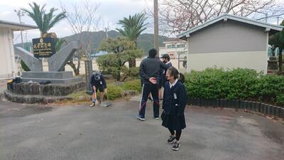 7月23日(水)、御所浦小中合同でボランティア活動を実施しました。中学校の生徒さん方がリードしながら、自分たちの地区で清掃活動に取り組みました。お菓子の袋やペットボトルなどのゴミを拾い、御所浦の環境をさらにきれいにしてくれた子どもたちです。ちなみに、写真の奥に見えるのは八代海です。遠くには九州山地も、うっすらと姿を見せていました。美しい景色と捨てられたゴミの対照が、なんとも印象的でした。
