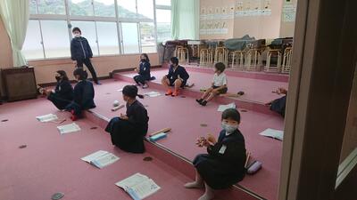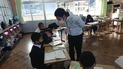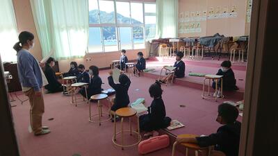 本日、東京都の明星大学の学生さん8名が、本校の教育活動の視察訪問に来校されました。皆さんは、へき地教育について自主的に学習をされている方々で、高い志を持たれています。歓迎会では、はつらつとした学生さんの姿に、子どもたちの目も輝いていました。3日間という短い期間ですが、御所浦小の子どもたちとの交流を満喫してほしいと思います。